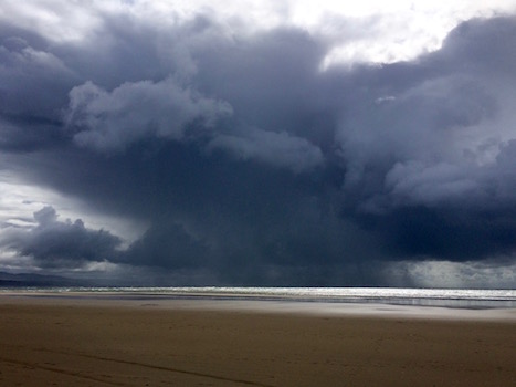 By the time I got to this gorgeous, wide beach with views across to the Merionydd coastline, the rain had entirely stopped and it was warm again. But when I looked out to sea, there was an absolutely massive black storm cloud with rain pouring down on the horizon - and honestly, it wasn't that far on the horizon. But it looked like it was going closer to Penrhyndeudraeth, which is just east of Porthmadog so I took my jacket back off, marveling at how there were still people on the beach even with giant stormclouds on the horizon.