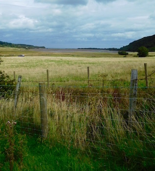 Anyway, rather early in my walk today - soon after leaving Moelfre, the former fishing village that Charles Dickens spent the Christmas of 1856 in - I realized that the cracks in the shoes I so very much hoped would just be fine had been joined by part of the material that connects the sole to the cloth of the shoe (basically just to the side of my big toe) had disappeared. This left a rather gaping hole in the side of the shoe, through which even more water could seep.