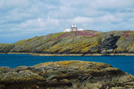I'd say it's hard to imagine that happening now with modern technology - but really even now this area felt fairly remote as I kept walking on. While just yesterday I'd passed a fairly crowded beach, today I saw very few people, and as I kept going, more rocks and higher hills and cliffs. Although I think there might be small villages further inland, really the main signs of life visible from the Wales Coast Path on the northeast corner of Anglesey are the Pilot Boat Inn, with it's food, drink, and rather interesting double decker bus turned children's ball pit bouncy castle and jungle gym; the picturesquely-set Point Lynas lighthouse on the extreme northeastern point; an estate the path skirts; a squirrel forest; and a church. There are a few houses here and there, in particular along one stretch of road, but there's more remote spots than inhabited spots.